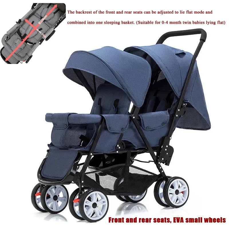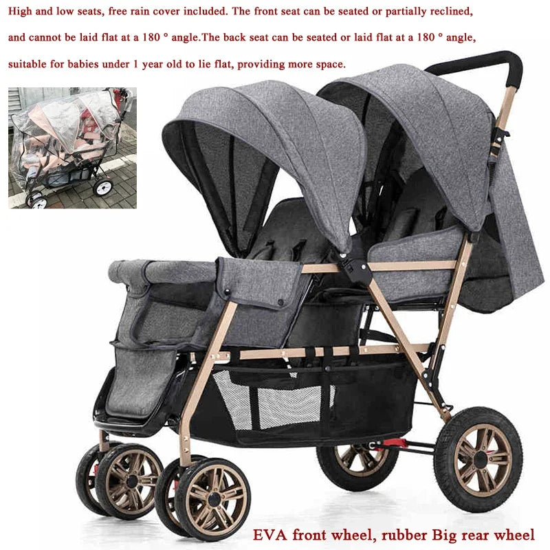 ✔ Une poussette double compacte qui reste confortable pour les deux enfants.